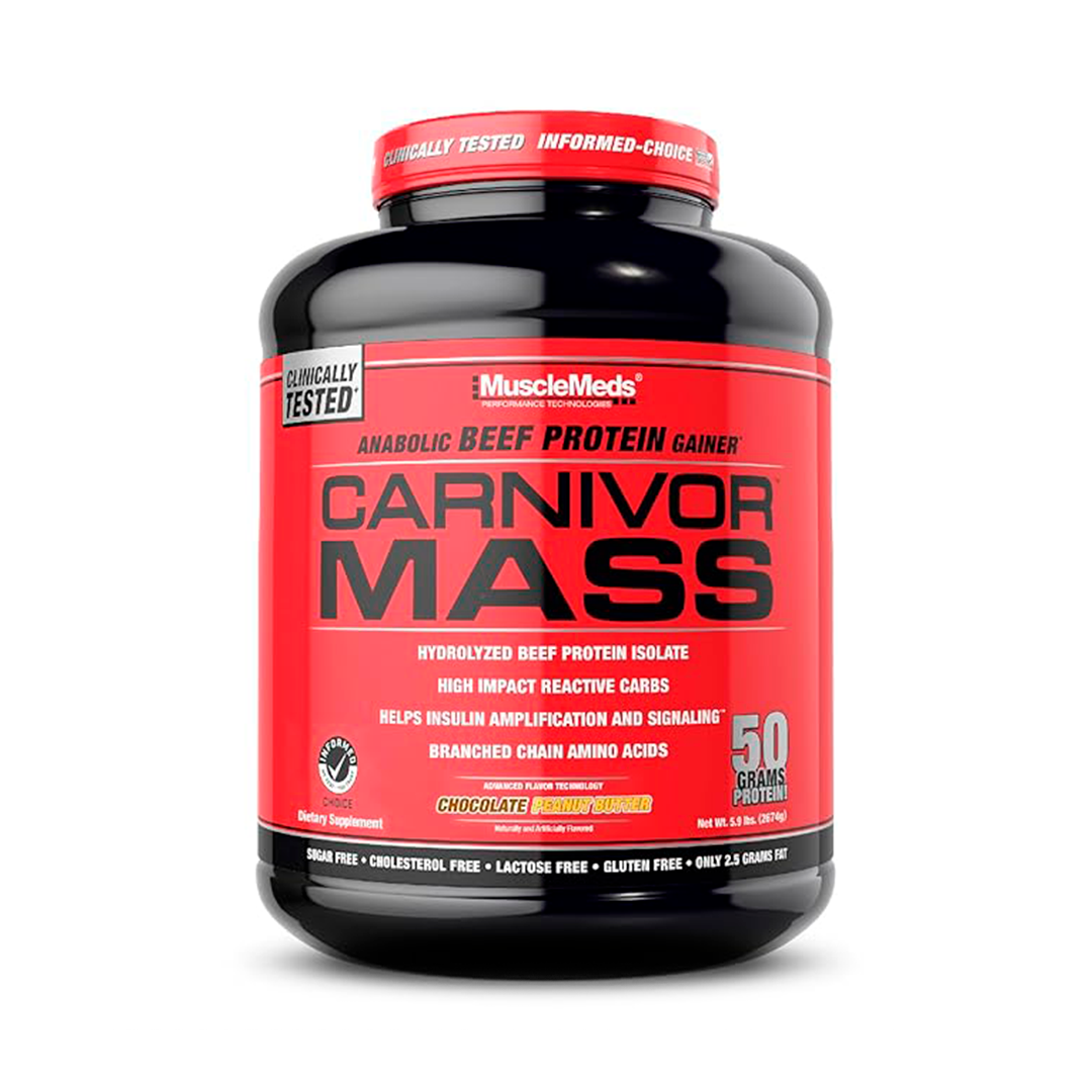 Carnivor Mass de MuscleMeds es un ganador de peso formulado con proteína de carne de res hidrolizada y carbohidratos de rápida absorción. Está diseñado para favorecer la construcción de masa muscular magra, al tiempo que proporciona energía inmediata para entrenamientos intensos.