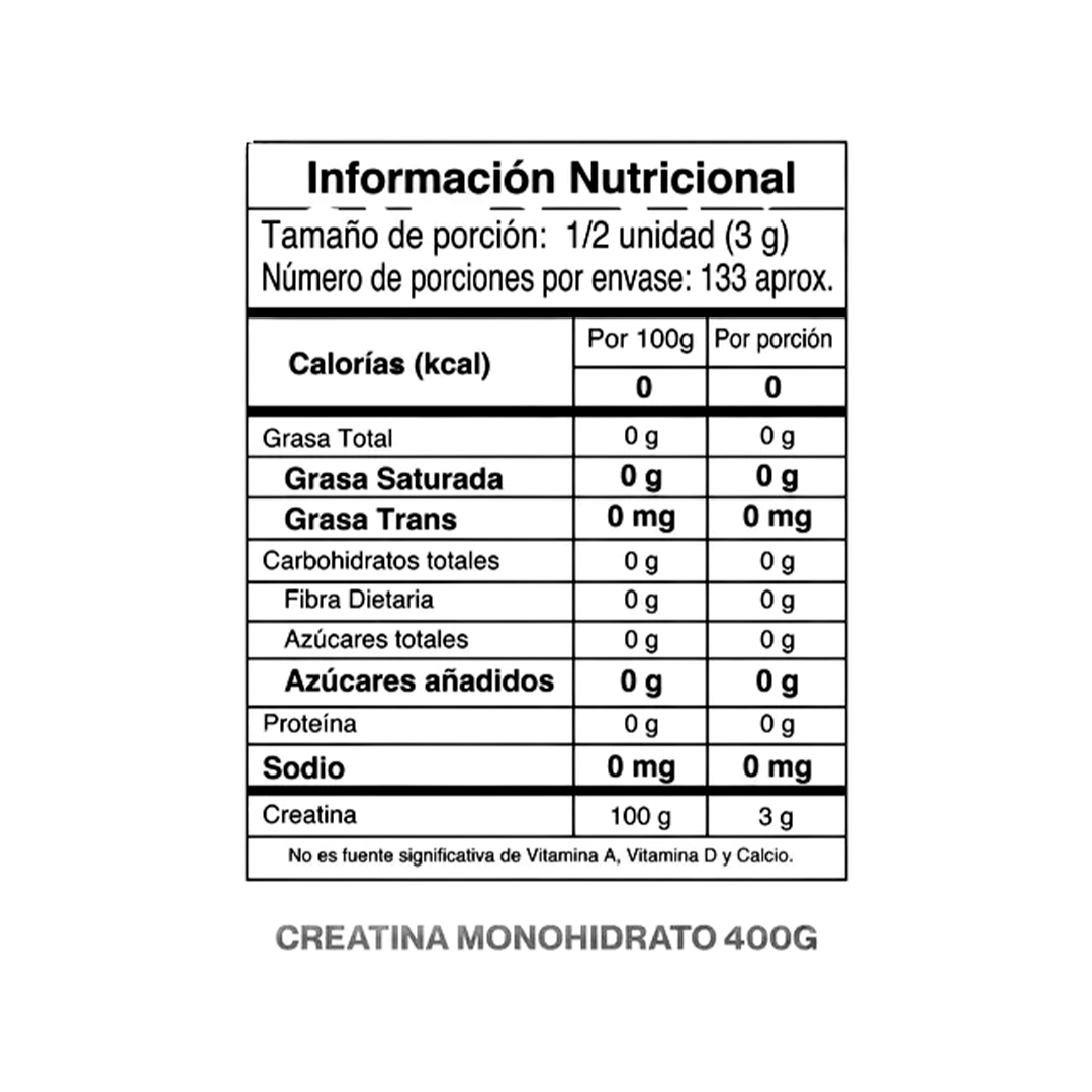 Creatina 400g – IMN ofrece creatina monohidratada pura, reconocida por su eficacia en el aumento de fuerza, potencia y masa muscular. Su presentación de 400 g asegura un ciclo prolongado con resultados consistentes.